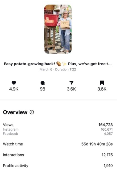 One thing we tell clients is to “just keeping making content". As long as you are talking about what your customers are interested in, you are adding value to them and others like them. And sometimes, you'll have a post that goes viral! We don't focus on making these moments, but sometimes they just happen. And funny enough? The ones that perform the best often shock you. Cornell's does a fantastic job on video - they just act like they're talking to a friend or customer and the videos turn out natural. After working with them for only a few weeks, they had a post go viral. It almost reached 165k views and added just under 2,000 followers (oh, and they only had 24 followers before this post!).Since then they've committed to video and get constant comments around town on their social media, get regular calls about products they highlight, and are deepening relationships with their customers. We don't focus on making them go viral, but the consistency is what's working.